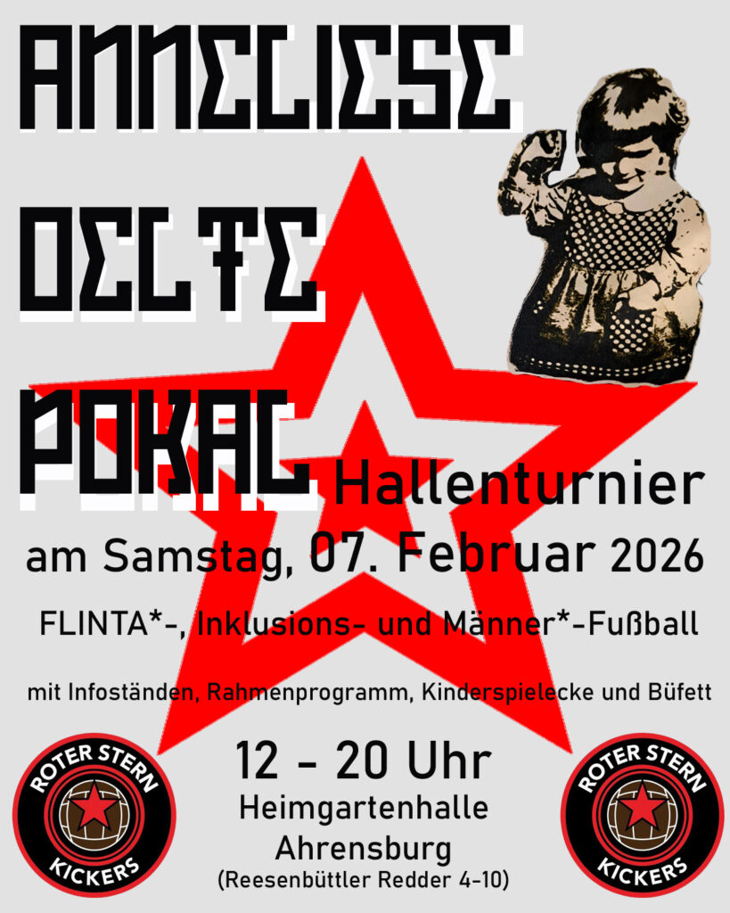 Am 7. Februar 2026 lädt der Roter Stern Kickers zum Anneliese-Oelte-Pokal in die Sporthalle der Gemeinschaftsschule am Heimgarten in Ahrensburg ein. Das Hallenturnier bringt seit vielen Jahren Fußball, Solidarität und politische Erinnerung zusammen – und ist längst ein fester Termin im Kalender vieler Teams und Zuschauer:innen.