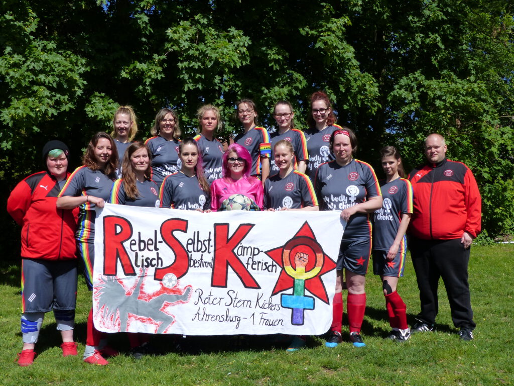 FLINTA* sind bei uns jederzeit im Team und beim Training willkommen! Noch schöner ist es aber natürlich, wenn auch alle Spieler*innen bei unseren Pflicht-, Freundschafts- und Testspielen offiziell im Trikot des Roten Sterns auflaufen wollen und können!