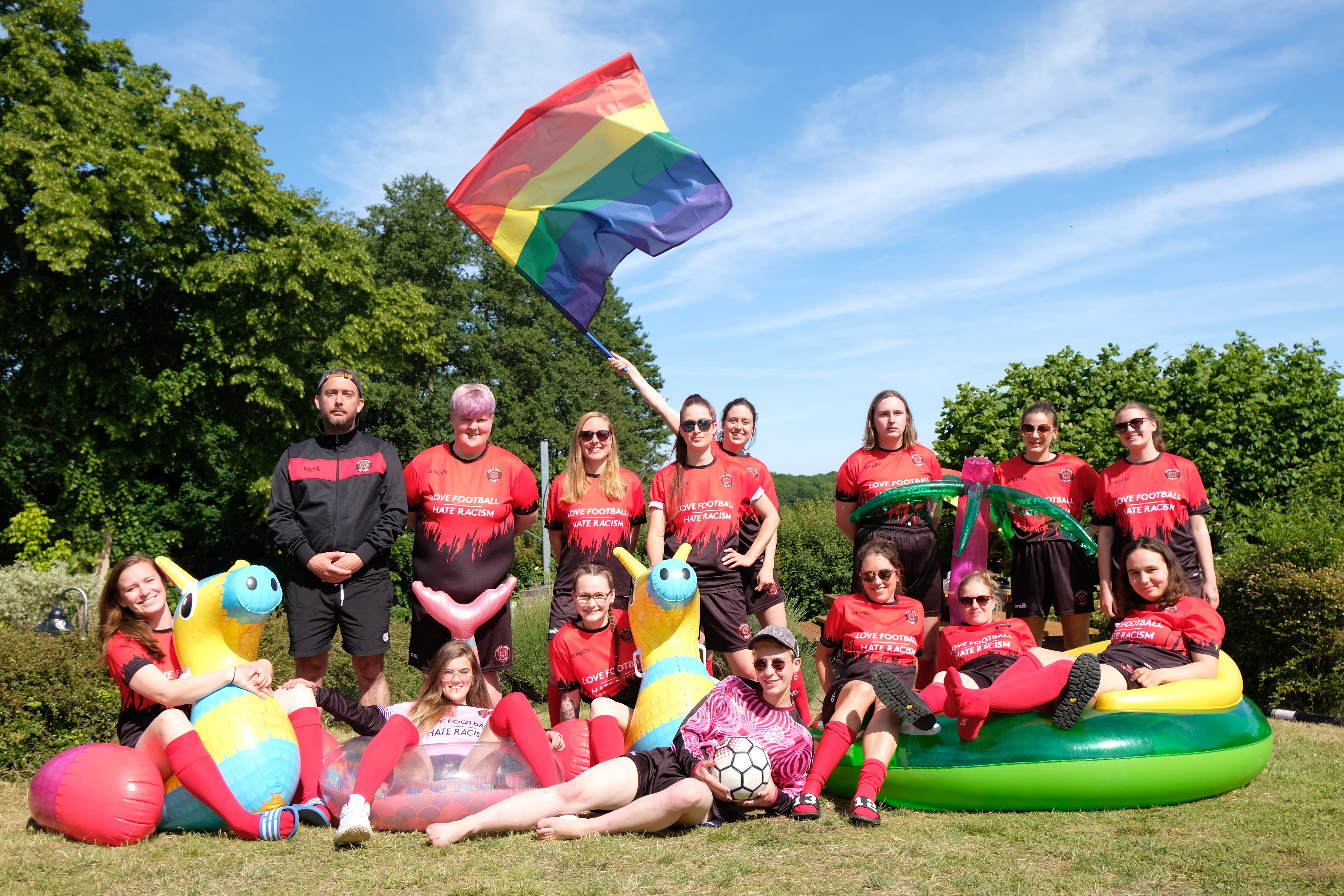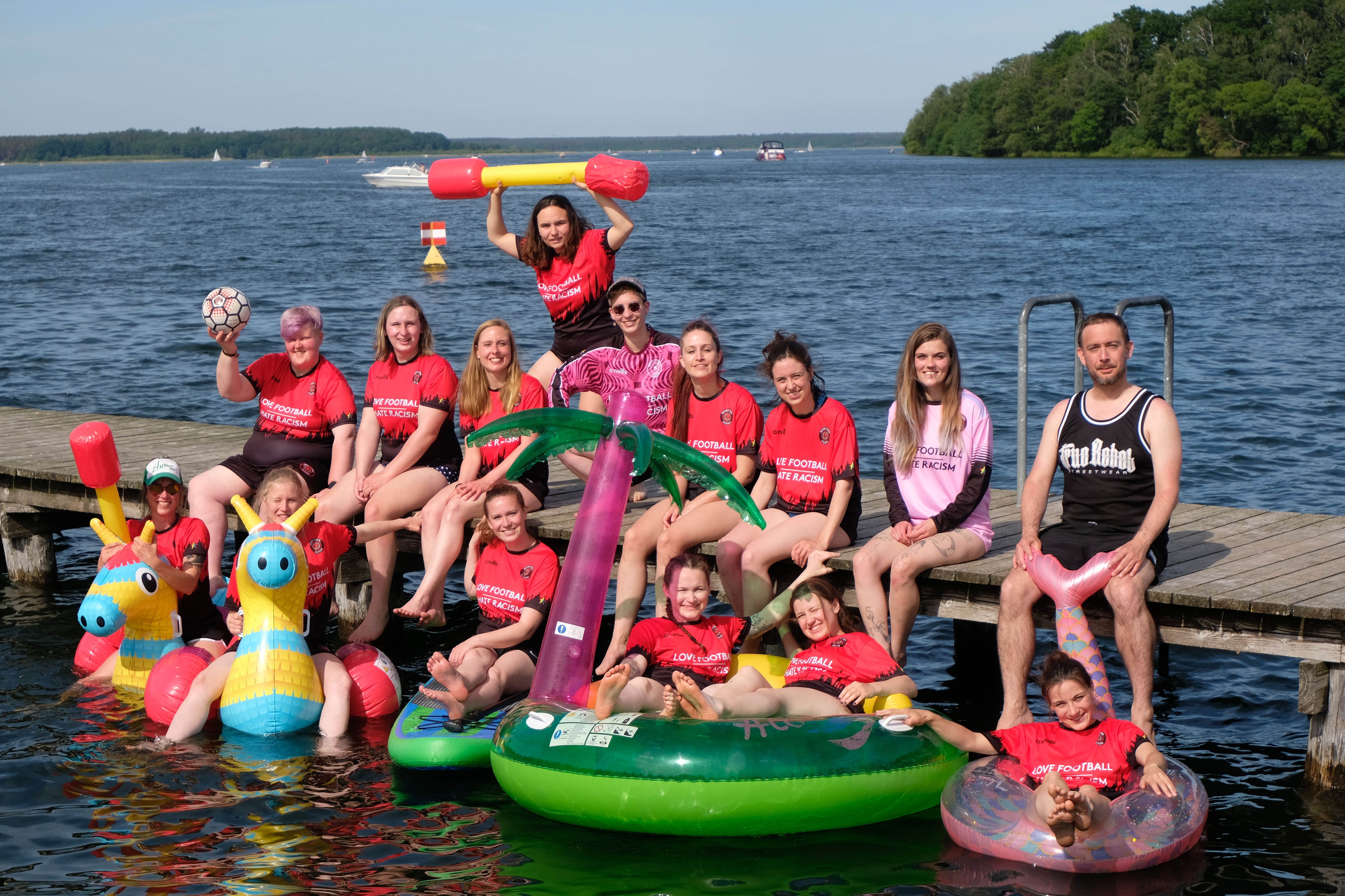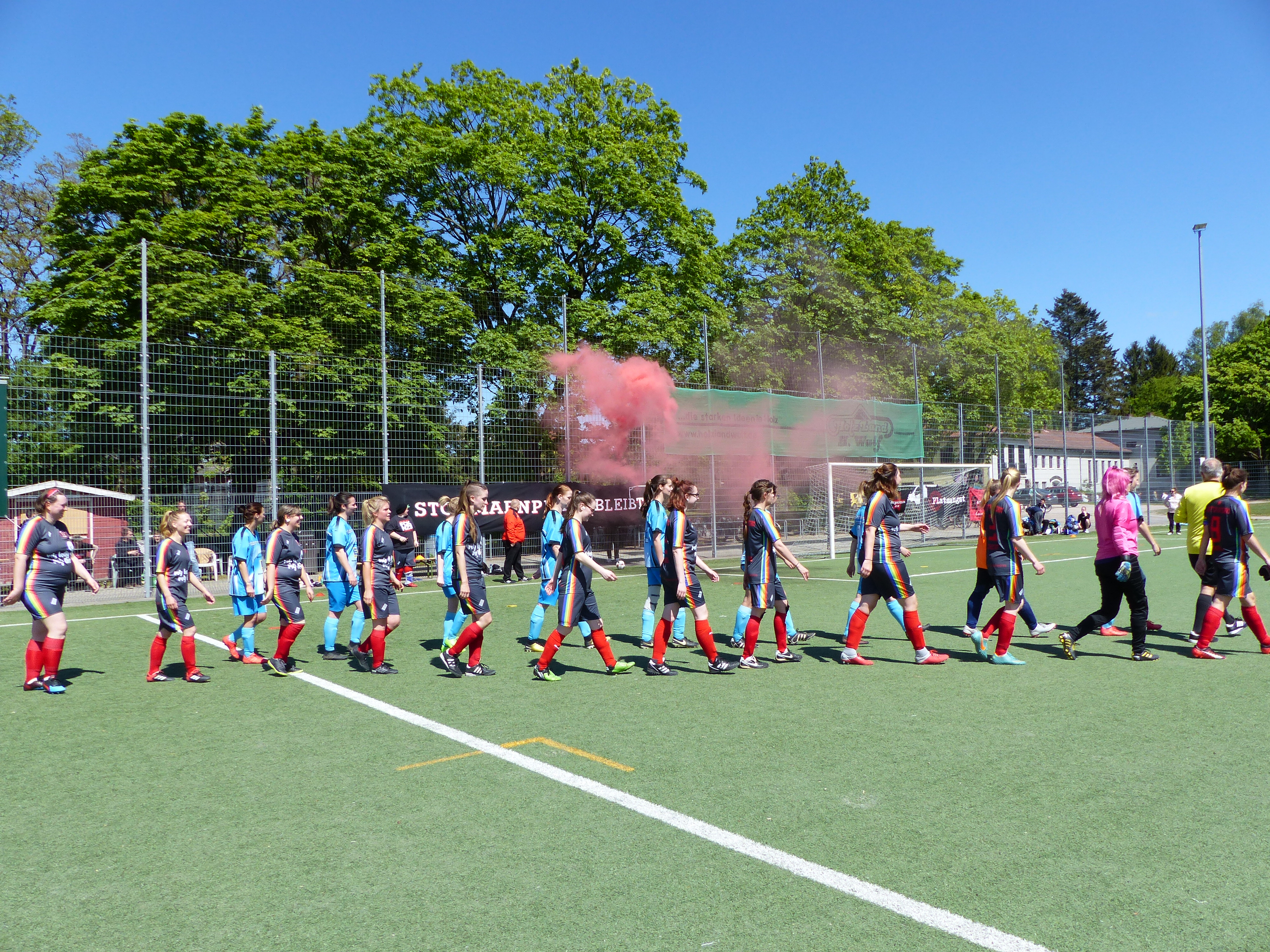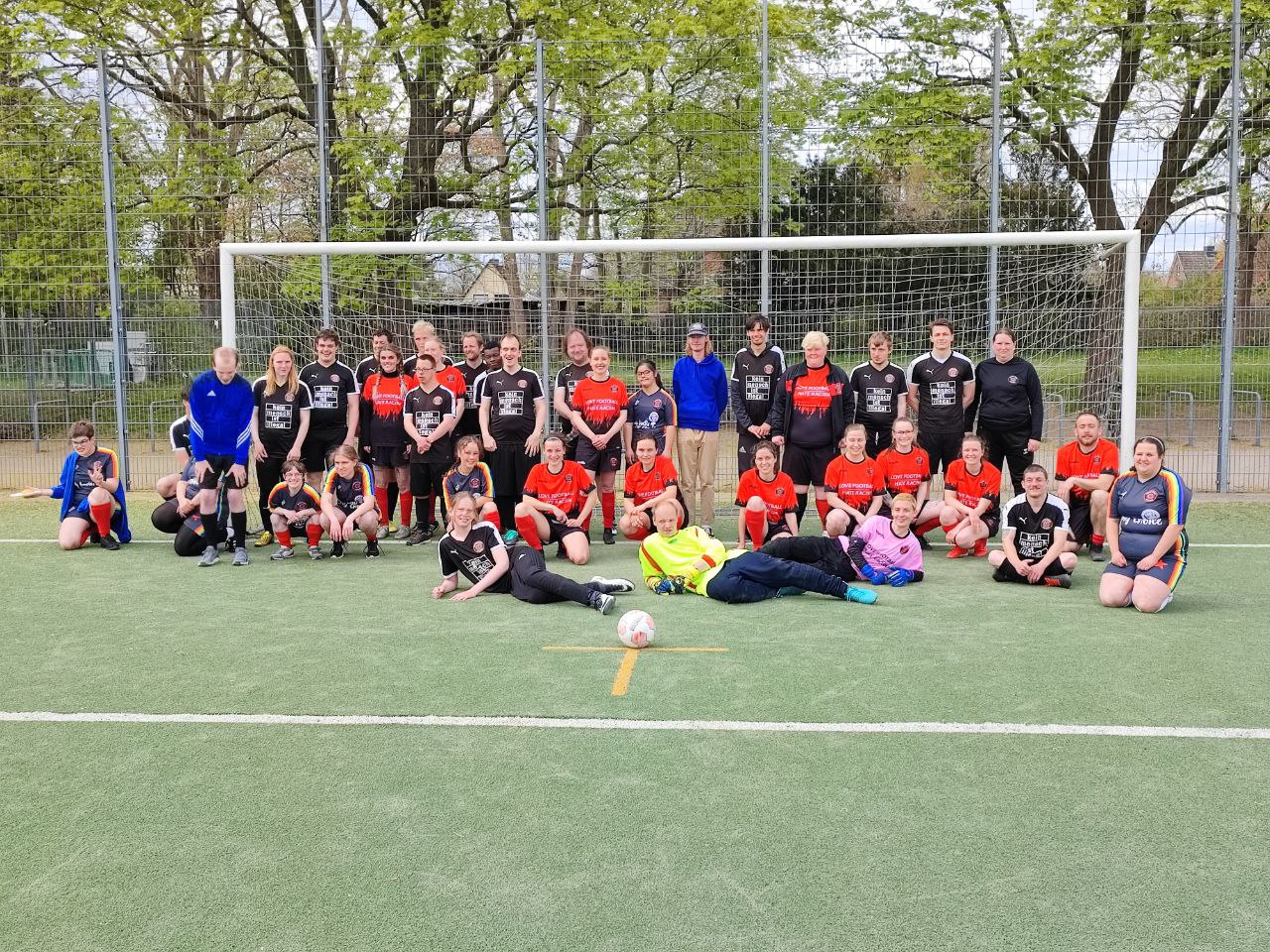 Dafür ist eine sogenannte Spielberechtigung notwendig, die beim jeweiligen Fußballverband beantragt wird. Nach der Entscheidung des DFB im Sommer 2022 können sich trans* und nicht-binäre Menschen entscheiden, ob sie eine Spielberechtigung in der Spielklasse der Frauen oder der Männer beantragen möchten. Wie diese Bundes-Regelung aber in den einzelnen Ländern umgesetzt wird, ist leider noch nicht grundsätzlich geklärt. In Berlin gibt es diese Möglichkeit z.B. bereits seit letztem Jahr und dort ist es notwendig, ärztliche Atteste oder andere Unterlagen vorzuweisen, die zum Beispiel eine Hormontherapie oder andere Transitionsprozesse belegen. Wir sind der Meinung, dass das Quatsch ist. Nicht jede trans* Frau plant operative Eingriffe. Nicht jede nicht-binäre Spieler*in möchte den Geschlechtseintrag aufwendig im Personenstandsregister ändern lassen. Im Austausch mit dem Schleswig-Holsteinischen Fußballverband haben wir es nun erreicht, dass zumindest nach einem Gespräch mit einer Vertrauensperson im Verband eine Spielerlaubnis auch ohne ärztliche Atteste möglich war. Wir setzen uns für jeden Menschen ein, der zu uns kommt und einen Verein sucht, in dem seine Identität akzeptiert und gewertschätzt wird, und unterstützen in jedem Fall bei der Erlangung einer Spielerlaubnis.